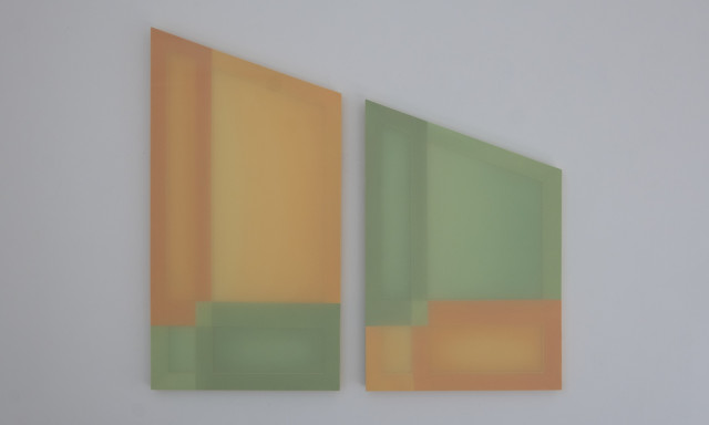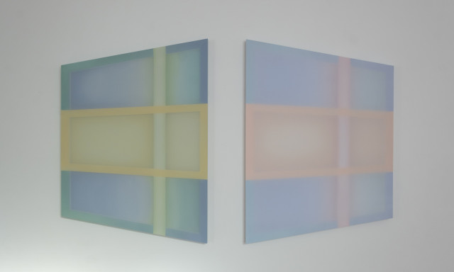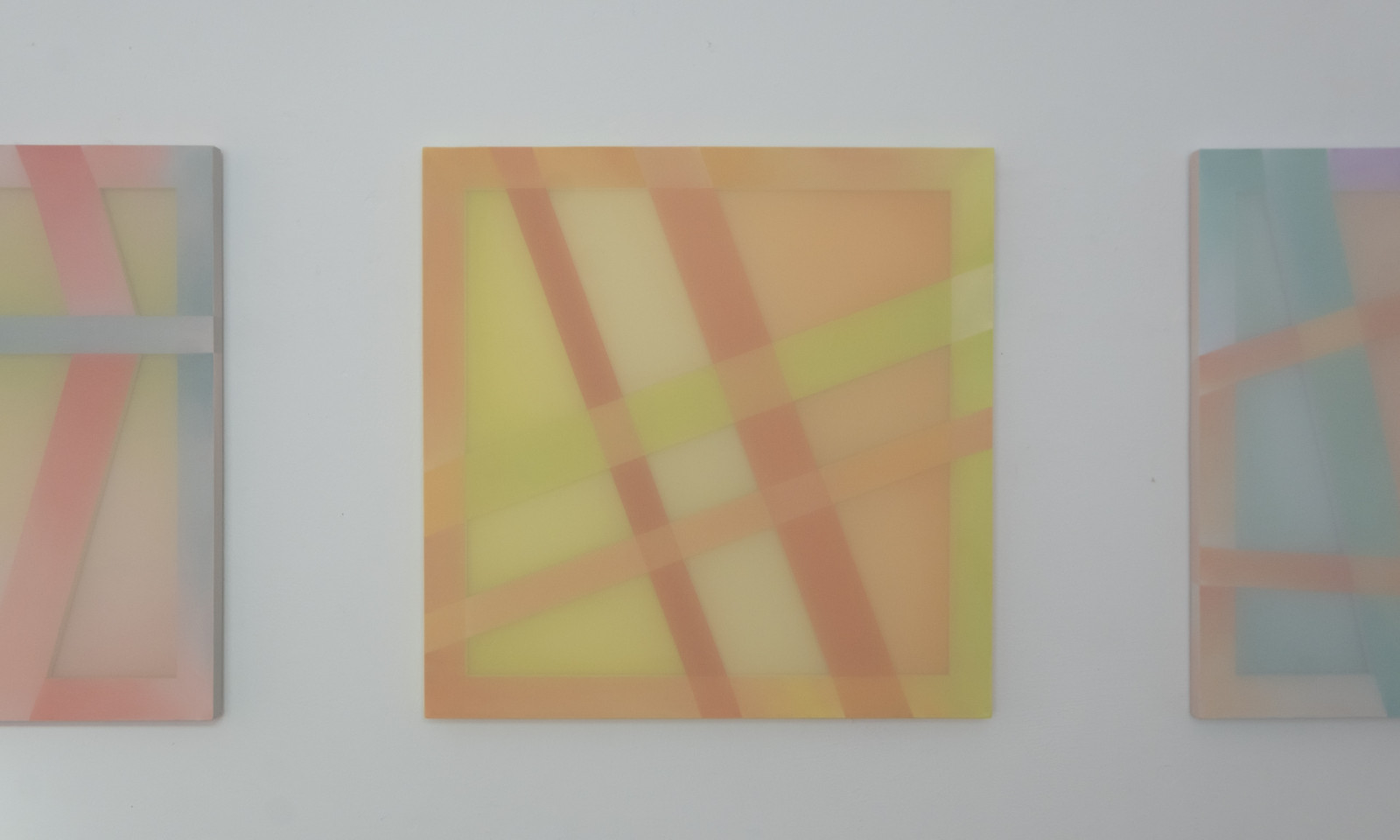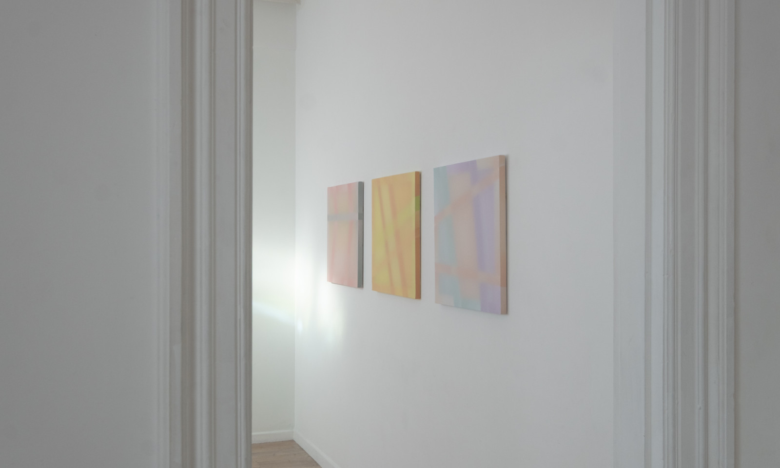 Taking cue from the reflections which cascade across walls and floors, Gilroy harnesses light play to create chromatic and spatial harmonies evocative of our environment. These artworks respond intimately to the sites they inhabit, absorbing the language of their surroundings. Light doesn’t just illuminate; it engages - its daily dance with the hues bring the works to life, casting new moods as time shifts. The works in To a Shadow’s Edge are inspired by the fleeting geometries of light and shadow within the architecture of the gallery, and the quiet impression these shadows leave behind. In these quiet transitions, the reading of colour and form is never fixed, but always evolving.